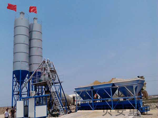 攪拌主機及骨料提升采用JS1000型雙臥軸強制式混凝土攪拌機,攪拌質(zhì)量好、效率高。